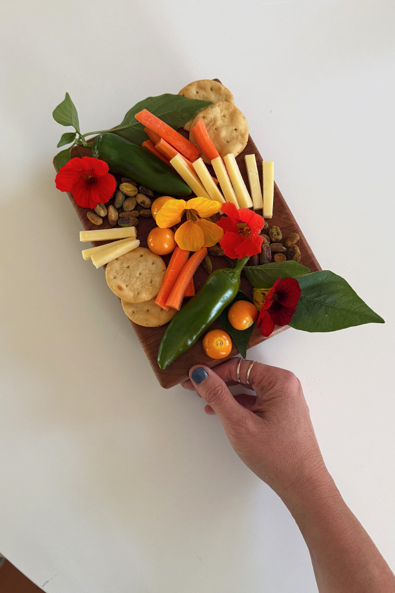 Whether you are using your cutting board to slice cheese on or setting out an epic charcuterie board with pepperoni and nuts and berries, styling a cutting board is a great entertainment piece for many occassions.