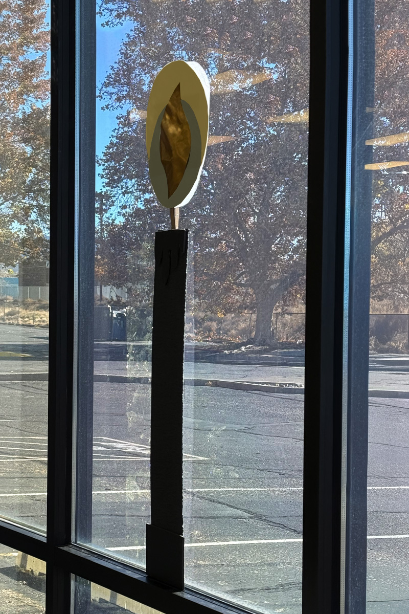 I also traced a smaller bowl on silver crepe paper and then cut out a gold “flame” with scissors. Using hot glue then put all the pieces together. Layer the silver glow onto the larger gold glow. Then, hot glue your gold wrapping paper “flame” to the very top.